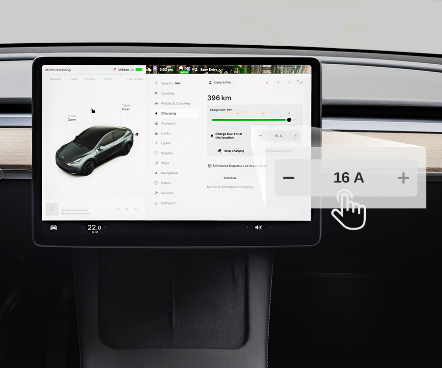 Prąd ładowania można ustawić od 6A do 16A w zależności od potrzeb.