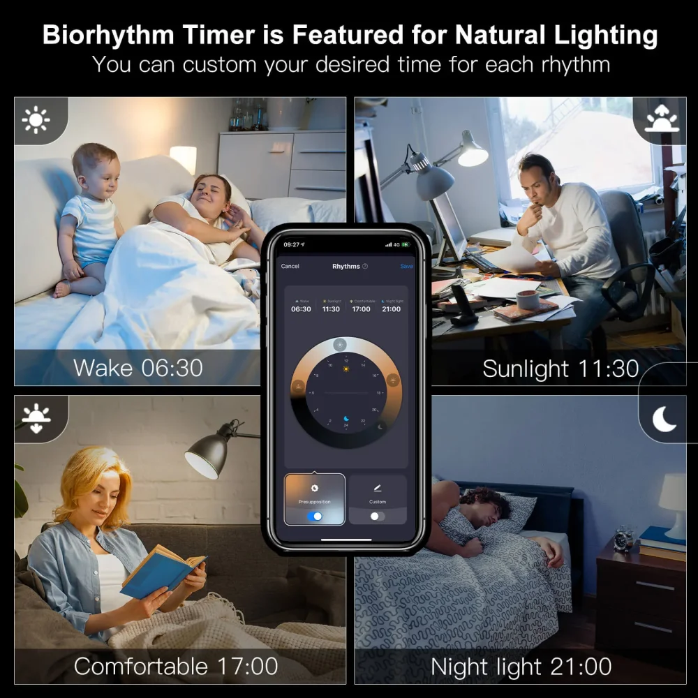 Pełna kontrola kolorów – Wybierz spośród 16 milionów kolorów lub dostosuj czyste białe światło w zakresie od 2,700K (ciepłe, relaksujące) do 6,500K (jasne, energetyzujące). Technologia RGB+CCT daje Ci niespotykaną elastyczność.